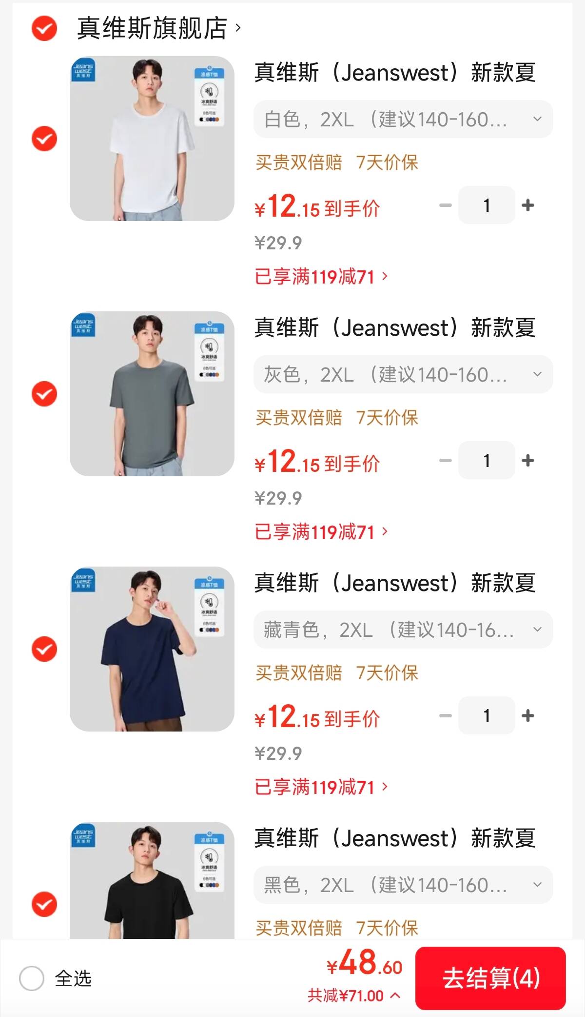 真维斯夏季t恤短袖 任选 件48元