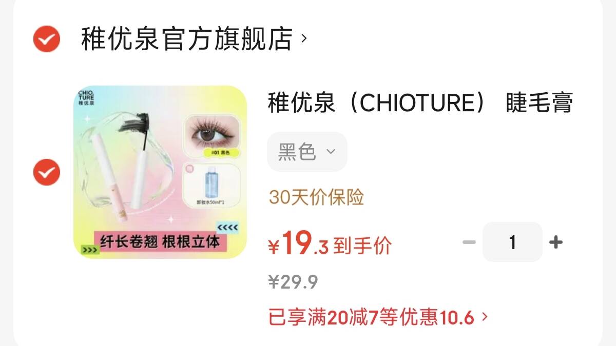 稚优泉细管睫毛膏黑色 赠卸妆水50ml 19元