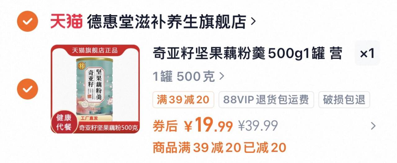 德惠堂奇亚籽坚果藕粉500g 19.99元发报员Z2026年04月15日 22:160举报 德惠堂.奇亚籽坚果藕粉一罐500g19.99元https://m.tb.cn/h.ipaE4mN多种果干 坚果 藕粉!配料表巨干净好喝又养胃复制文案