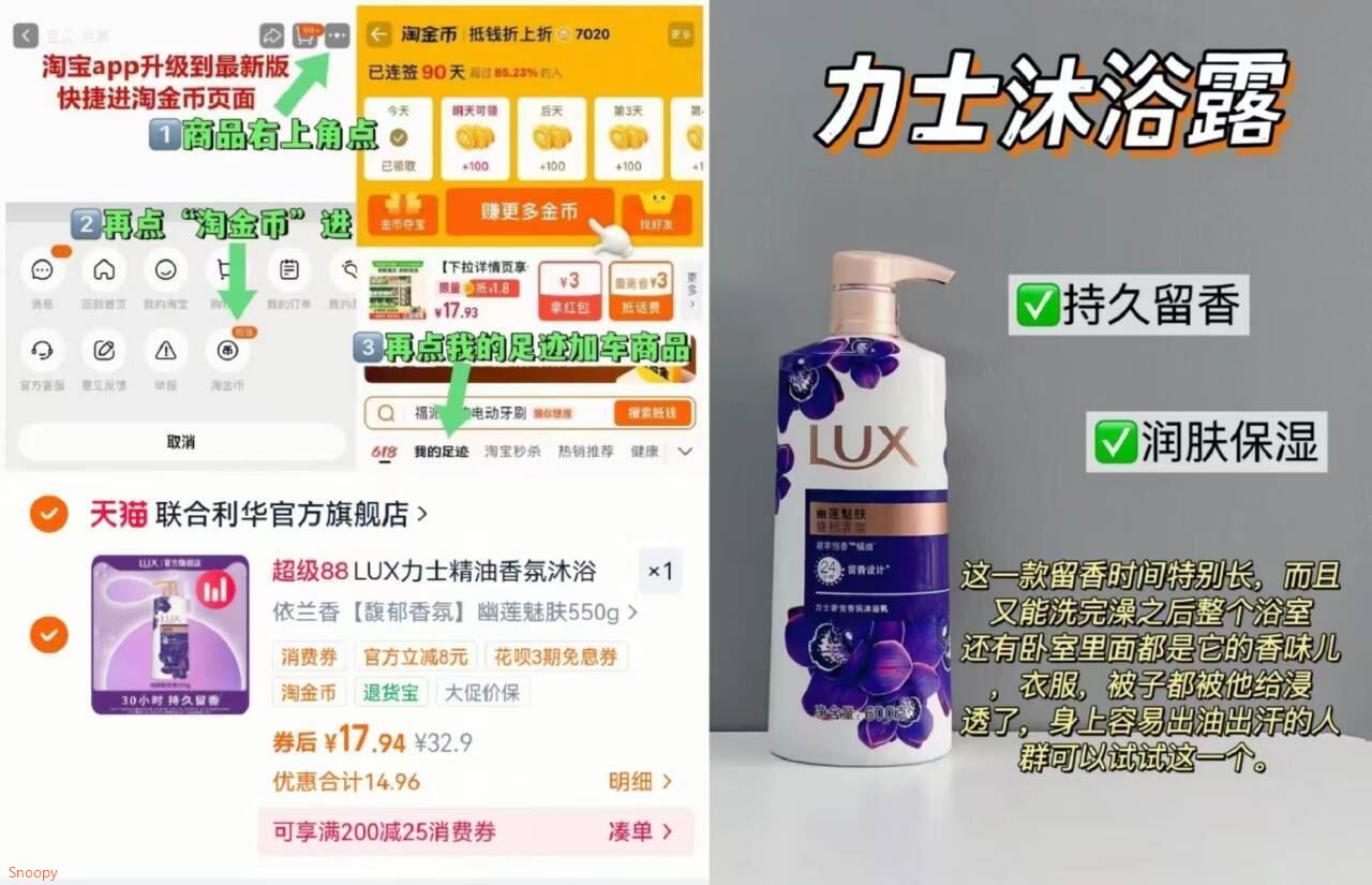 力士精油沐浴露550g香味任选 17.9元发报员Z2026年04月16日 00:350举报 17.9元 力士精油沐浴露 右上叠金币 550g香味任选特调香氛 30小时持久留香 滋润保湿不粘 回购N次啦!-https://m.tb.cn/h.iptcOa8复制文案