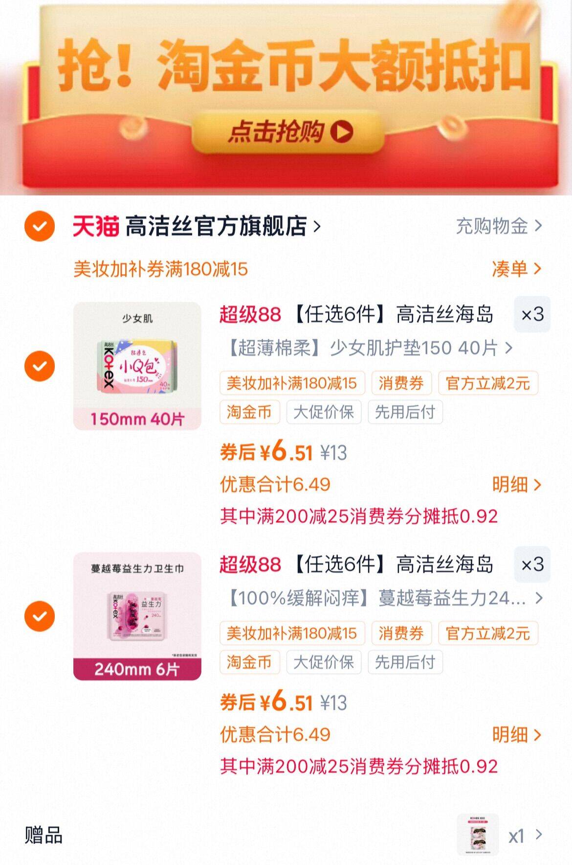 3、再凑1件,用200-25消费劵
