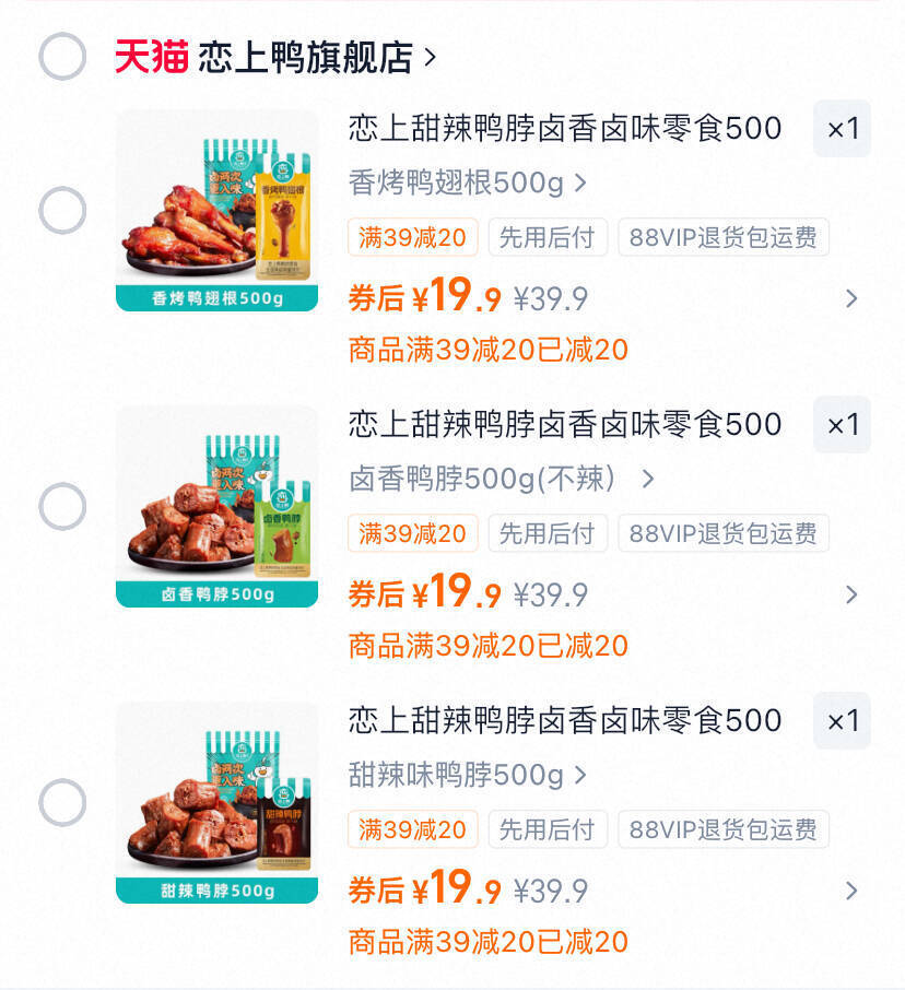 恋上鸭卤味合集500g 19.9元发报员Z2026年04月16日 09:060举报 线下80g就要7.9元!咱足足一斤鸭脖鸭翅根任选肉食党快冲 恋上鸭 卤味合集500g19.9元https://m.tb.cn/h.iKZEnVi复制文案