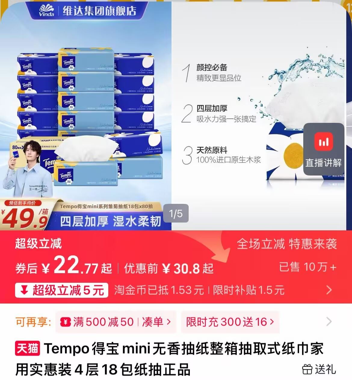 嘚宝无香抽纸8包装 22.7元发报员Z2026年04月16日 13:500举报 22.7元!需叠弹出礼金【嘚宝】无香抽纸8包装-每张四层加厚还很有韧劲!https://m.tb.cn/h.iLBH6NV复制文案