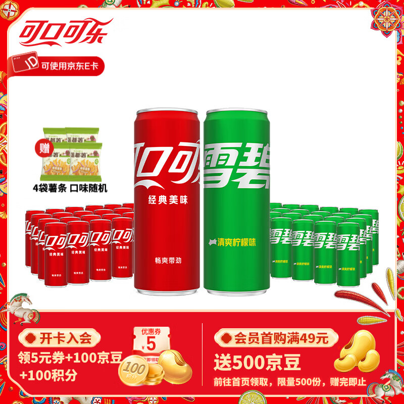 可口可乐碳酸饮料可乐雪碧330ml*24罐*2箱 79.8元