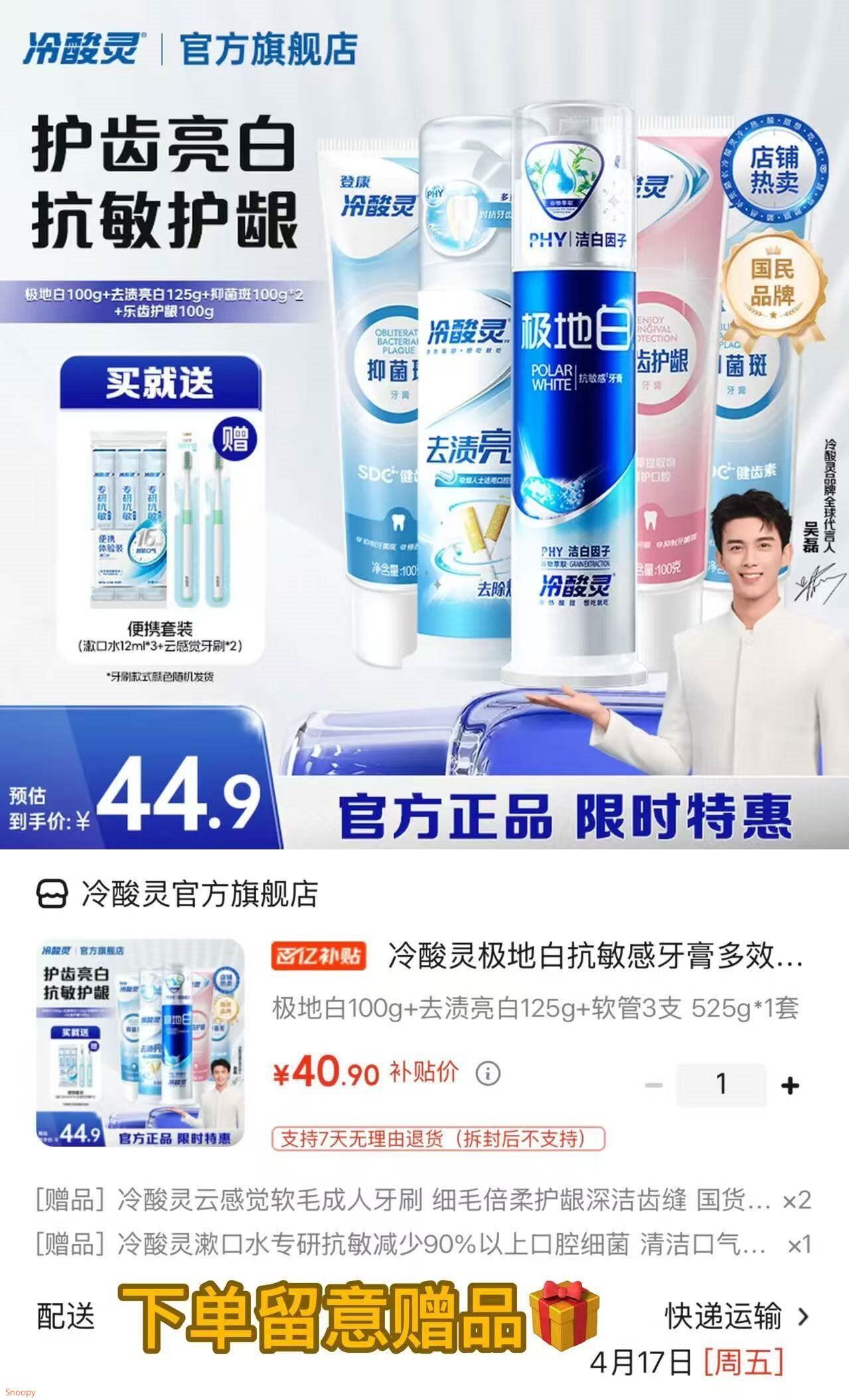 冷酸灵抗敏牙膏组合5支525g 28.9元发报员Z2026年04月16日 16:270举报 ——冷酸灵个护发車——冷酸灵 抗敏牙膏组合5支525ghttps://u.jd.com/j6ZjTki 28.9元,折5.7/支 吴磊代言*草本配方 温和护龈 清新口气复制文案