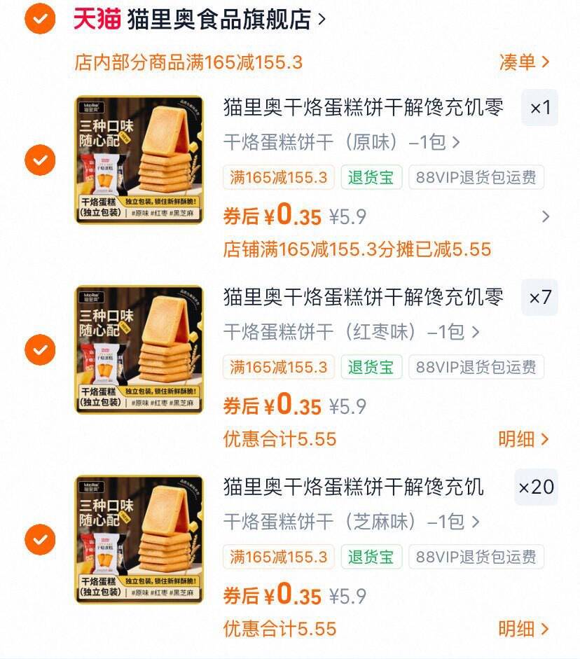猫里奥干烙蛋糕奶酪饼420g拍28件 9.9元发报员Z2026年04月16日 16:320举报 猫里奥干烙蛋糕奶酪饼420g拍28件9.9元 0.3元/件办公室解馋神器 酥脆可口 https://m.tb.cn/h.iqPgx07复制文案