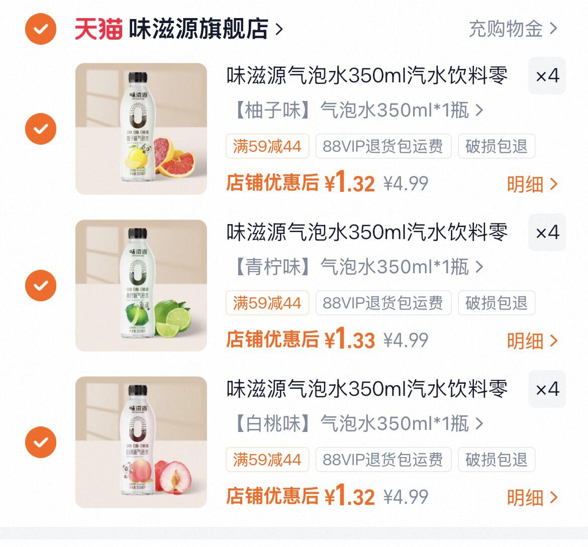 味滋源0糖0脂气泡水350ml/瓶 拍12件 1.3元/瓶发报员Z2026年04月16日 16:500举报 拍12件,折1.3元/瓶 味滋源0糖0脂气泡水350ml/瓶https://m.tb.cn/h.iK7Mmwn复制文案