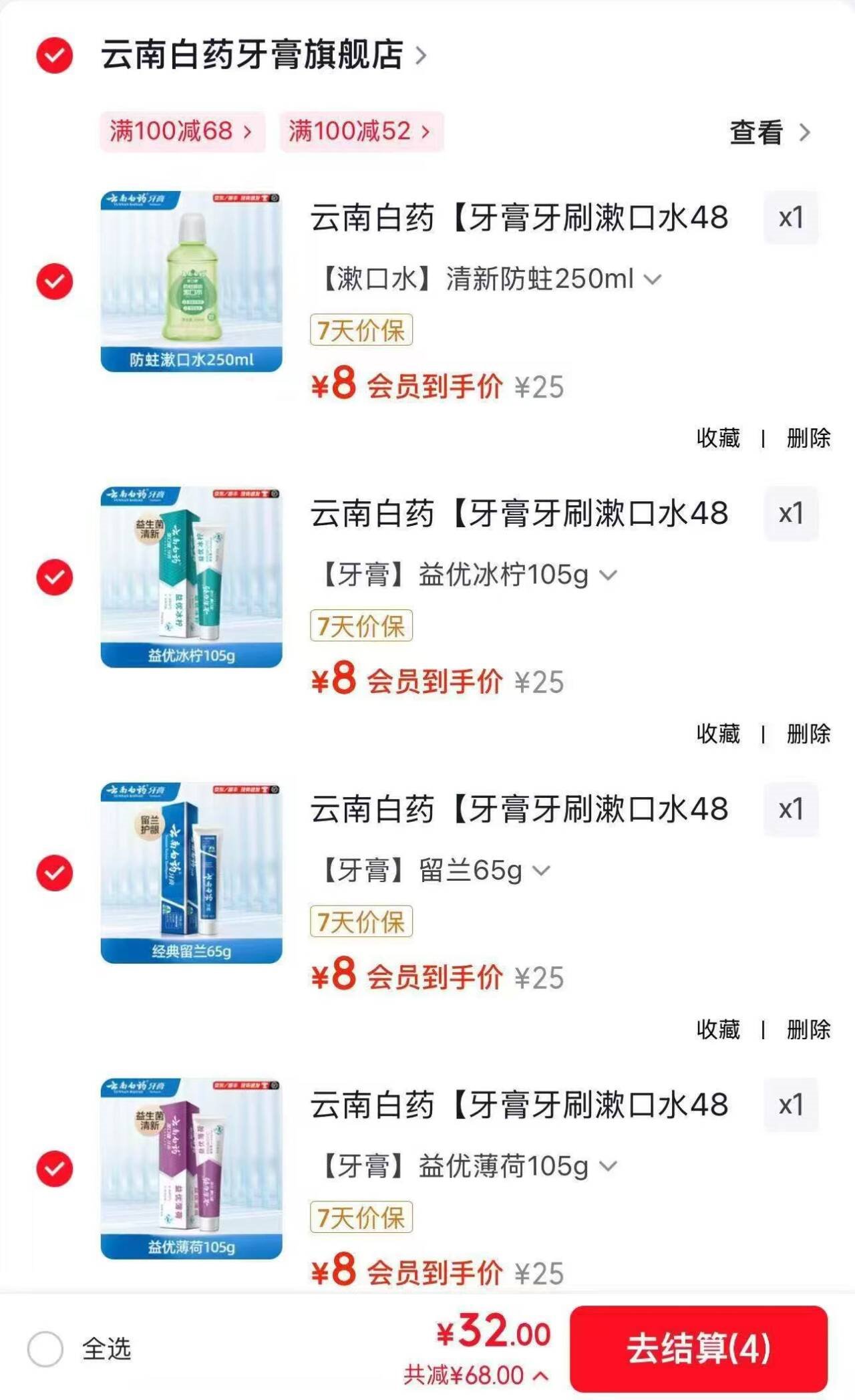 任选4件付32元,折8元/件