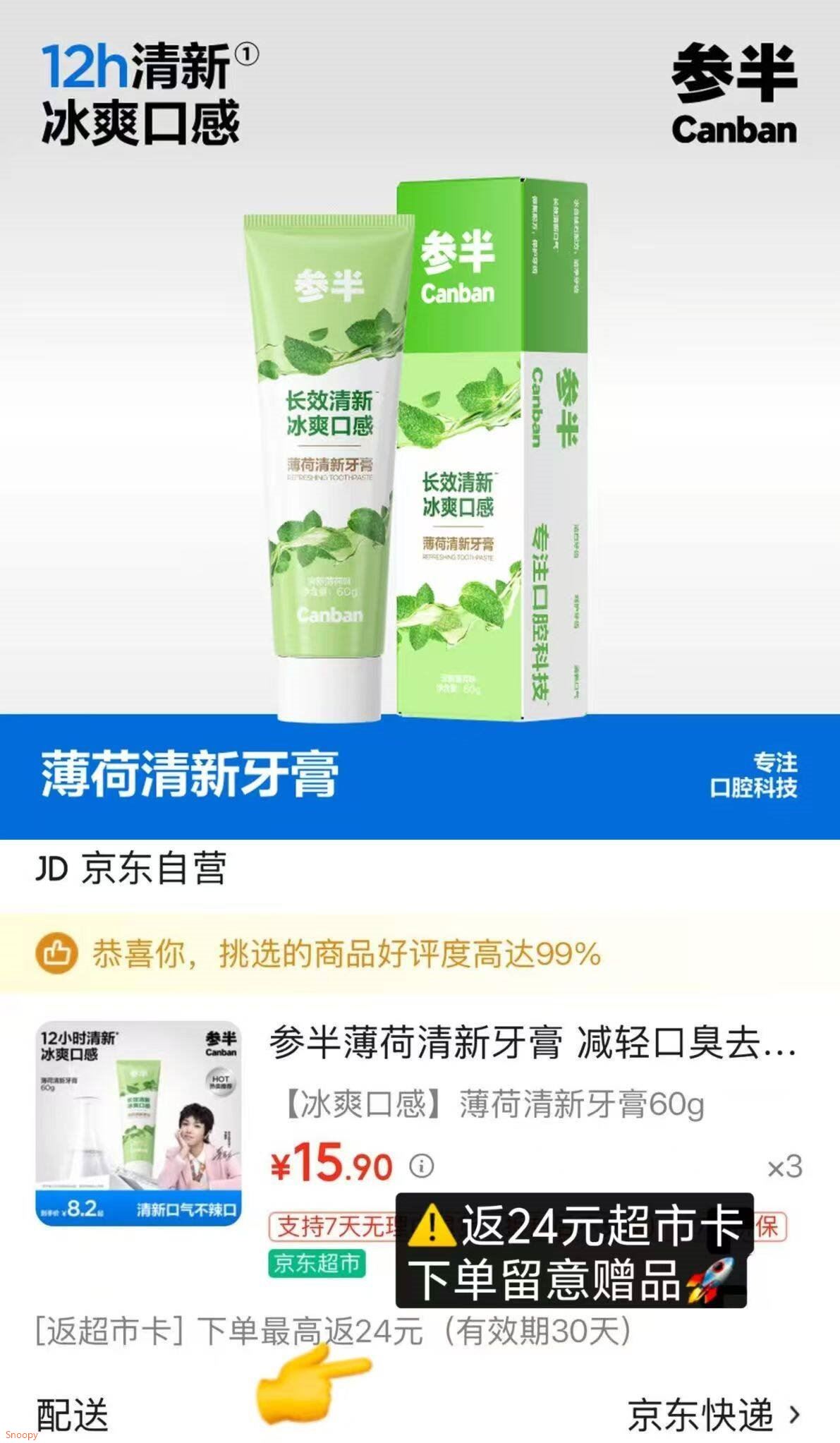 参半冰爽口感牙膏60g 买3件26.7元包U,限时包U发报员Z2026年04月16日 20:110举报 ——参半 牙膏shen车——【自营】参半 冰爽口感牙膏60ghttps://u.jd.com/j1A3KEg 买3件26.7元包U,限时包U*反24元超市卡 才折0.9元/支复制文案