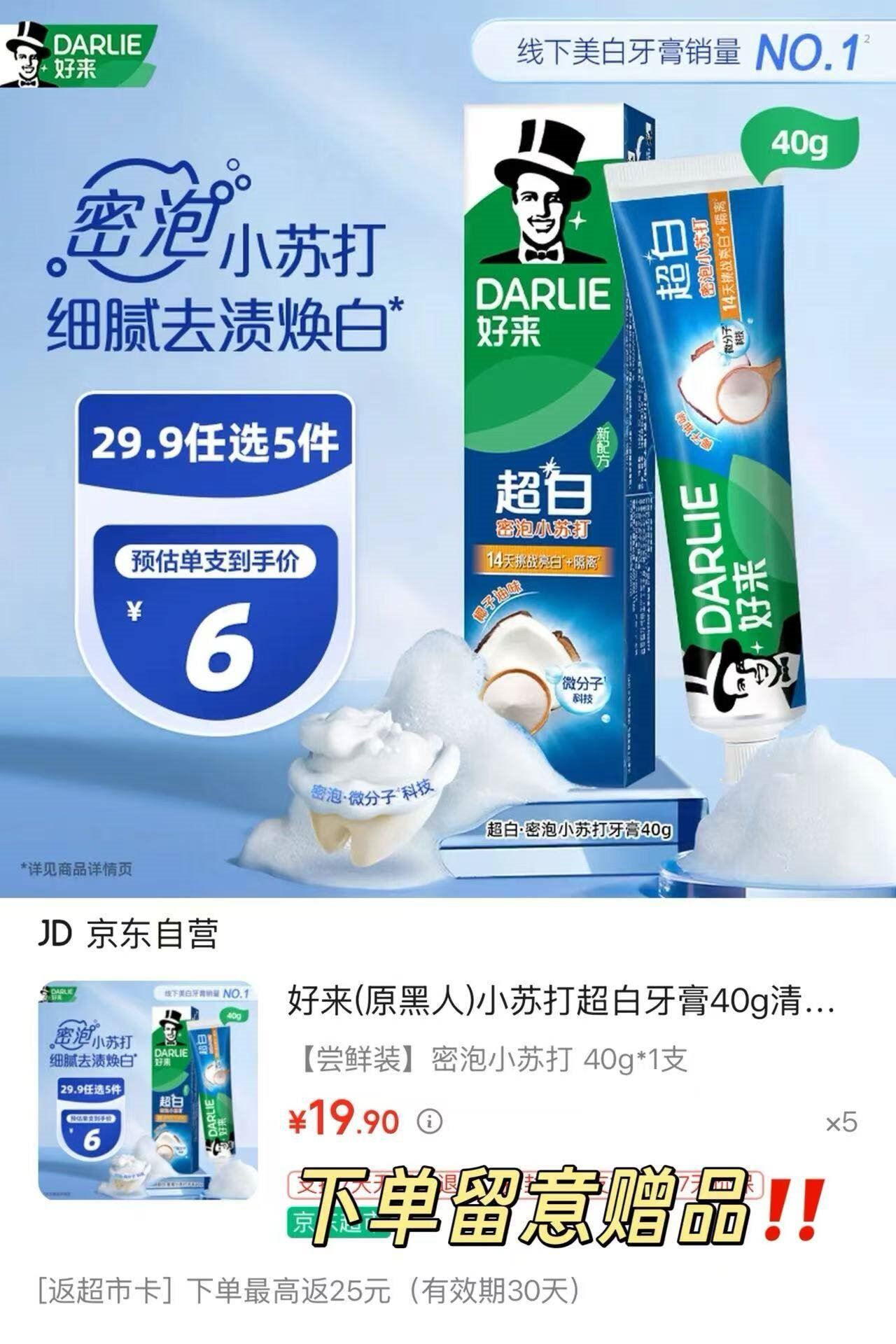好来小苏打牙膏40g 买5件29.9元发报员Z2026年04月16日 21:570举报 —— 好来牙膏shen价——【自营】好来 小苏打牙膏40ghttps://u.jd.com/jDAkUf9 买5件29.9元 U,plus包U*反25元超市卡 低至0.9元/支复制文案