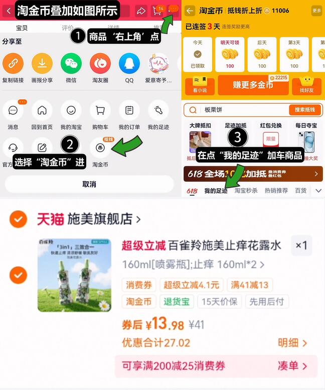 百雀羚花露水喷雾160ml*2瓶 13.9元发报员Z2026年04月17日 00:500举报 6.9元/瓶神忦!拍下13.9元【百雀羚】花露水喷雾160ml*2瓶①如图点右上角3个点,选淘金币②选我的足迹-找到商品拍https://m.tb.cn/h.iKKG6dv复制文案