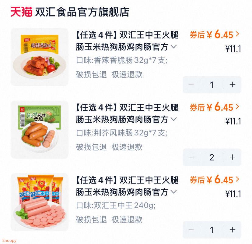 双汇火腿肠合集任选4件40支 25.8元发报员Z2026年04月17日 08:500举报 0.6/支 双汇火腿肠合集任选4件25.8元 40支!配泡面/螺蛳粉绝了 速度~https://m.tb.cn/h.iKVPwqW复制文案