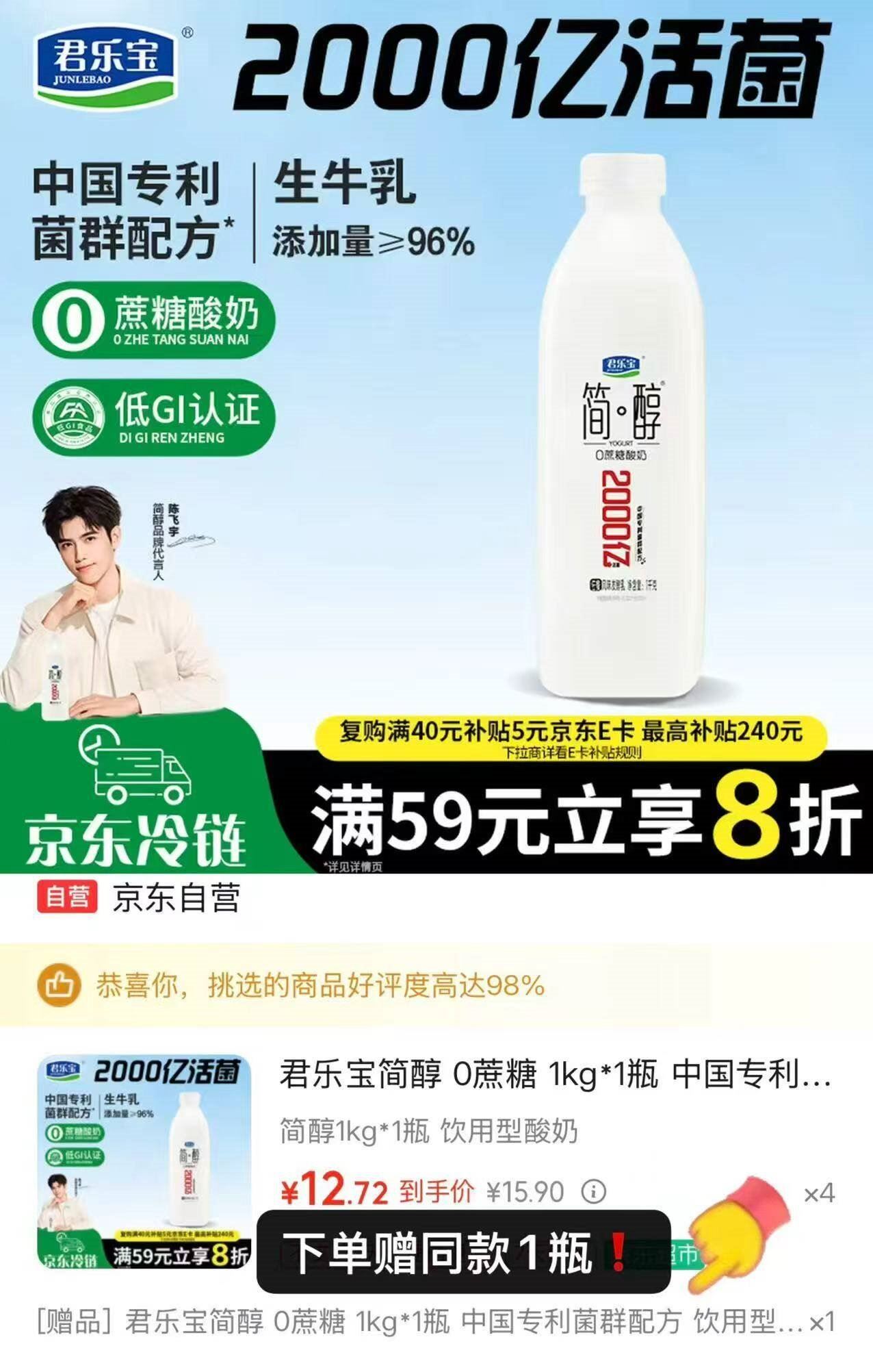 君乐宝酸奶秒杀 自营 简醇低温酸奶1000g 买4件50.8元 U Plus包U发报员Z2026年04月17日 09:270举报 ——君乐宝酸奶秒杀——【自营】简醇低温酸奶1000ghttps://u.jd.com/jrJClLq买4件50.8元 U,Plus包U*贈同歀1瓶 新客下単再减2元复制文案