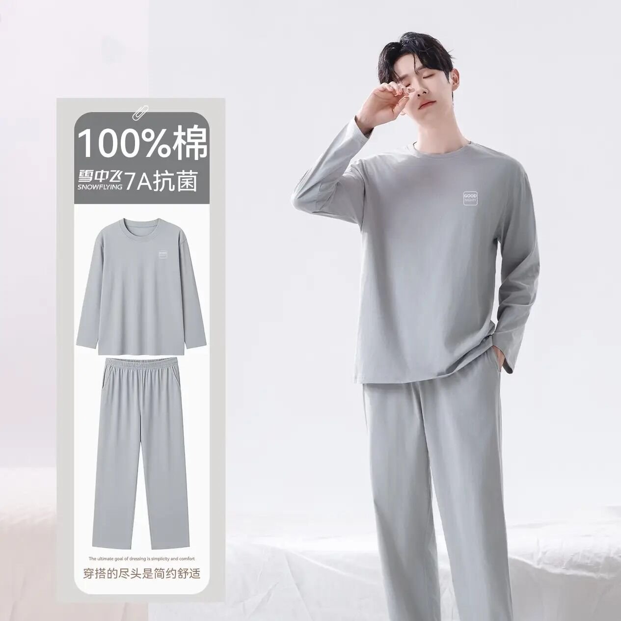 雪中飞 纯棉长袖家居服套装男