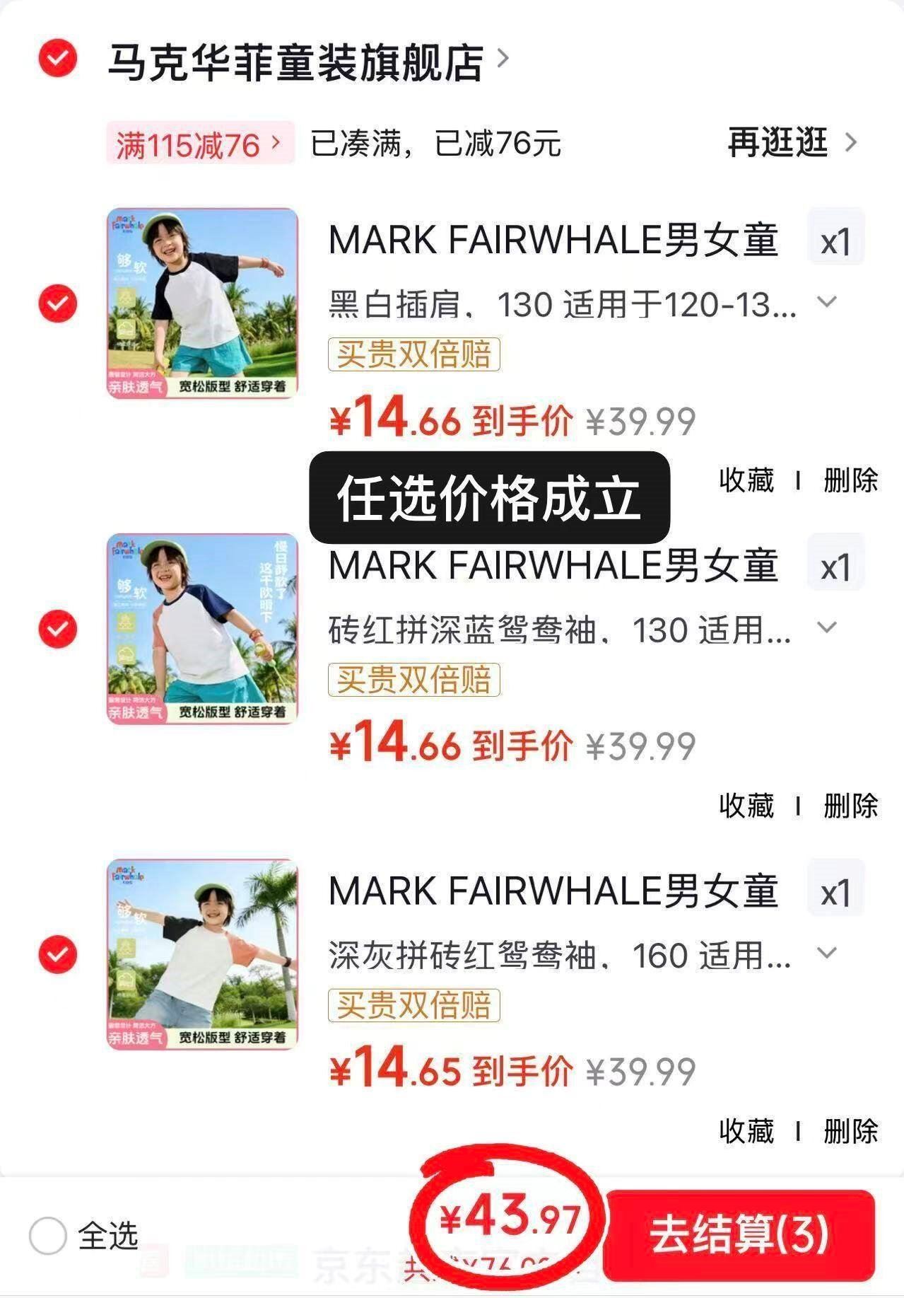 任选3件43.9元,才14.6/件