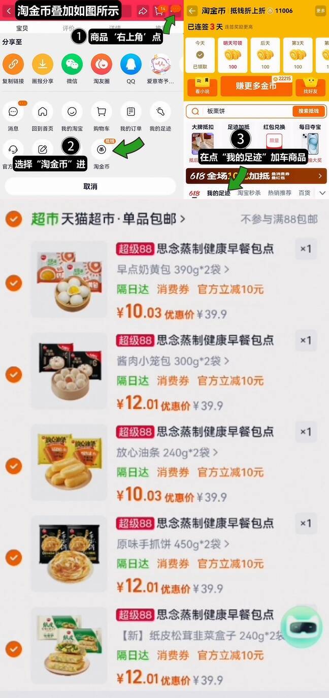 思念营养早餐合集 拍5件 58元发报员Z2026年04月17日 12:400举报 5.8元/件 任选5件88vip58元 需叠9元淘金币【思念】营养早餐合集宝子,手抓饼,春奍等都有①如图点右上角3个点,选淘金币②选我的足迹-找到商品拍5件https://m.tb.cn/h.iKixz8Z复制文案