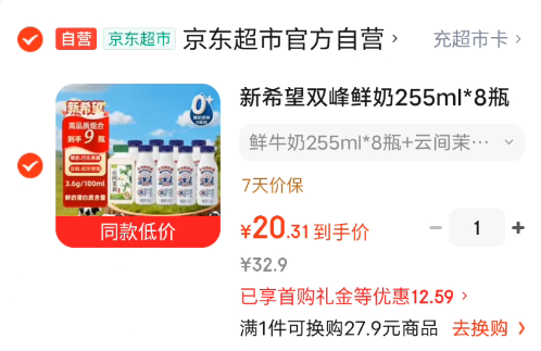 新希望双峰 鲜奶 云间茉莉奶9瓶组合