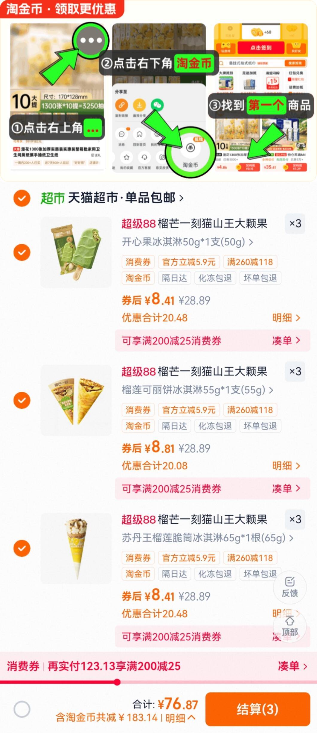 榴芒一刻猫山王冰淇淋拍9件 76.8元发报员Z2026年04月17日 14:410举报 榴芒一刻猫山王冰淇淋88vlp拍9件叠琻币76.8元折8.5元/支多歀可选https://m.tb.cn/h.iJgpr1O复制文案