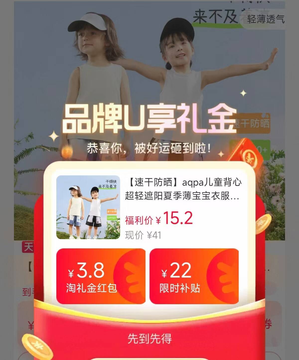 aqpa男女童速干防晒背心 15.2元发报员Z2026年04月17日 14:510举报 aqpa男女童速干防晒背心天热穿正好!15.2元https://m.tb.cn/h.iKkmk87-先取消勾选,再选码选款复制文案