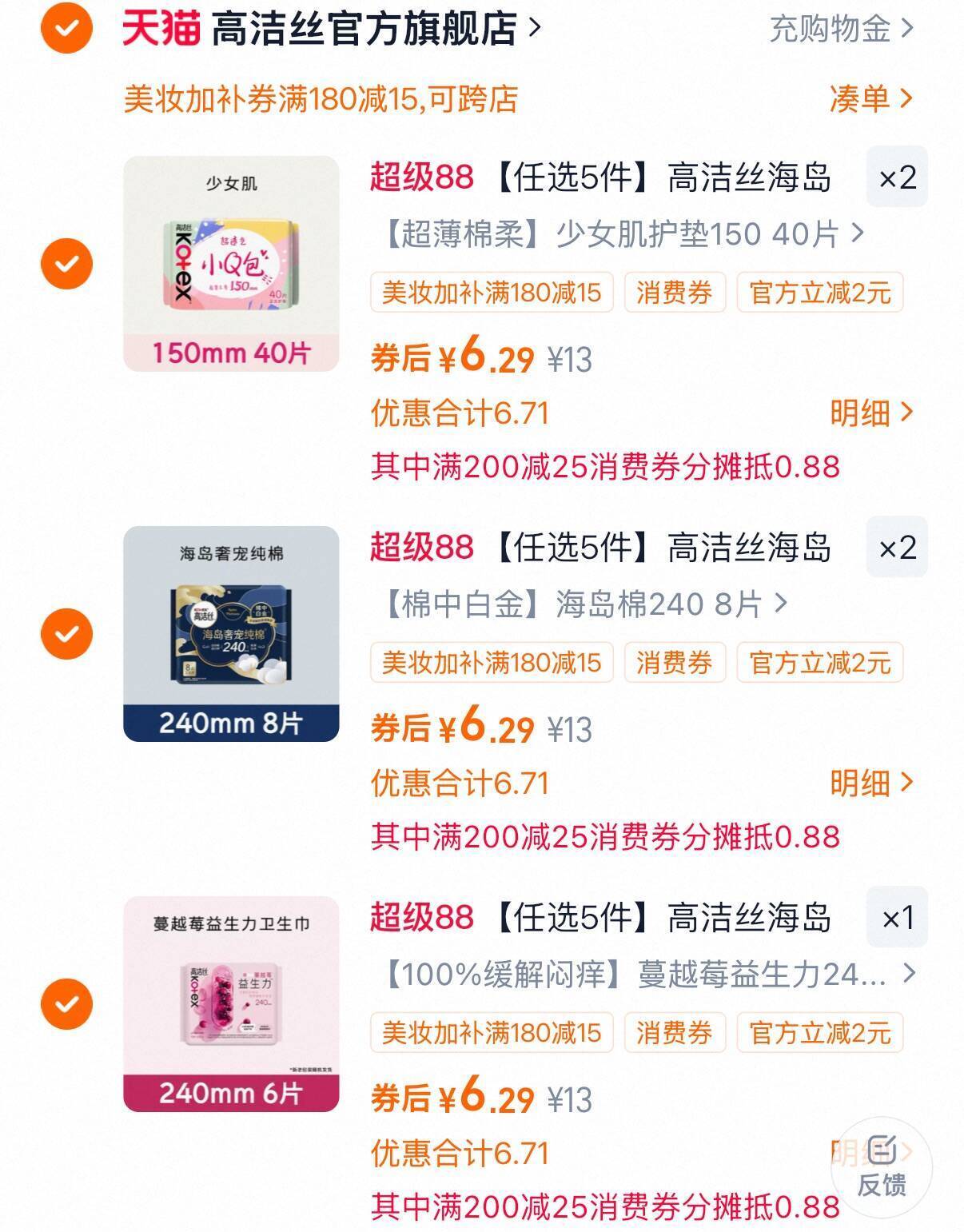 3、再凑1件,用200-25消费劵