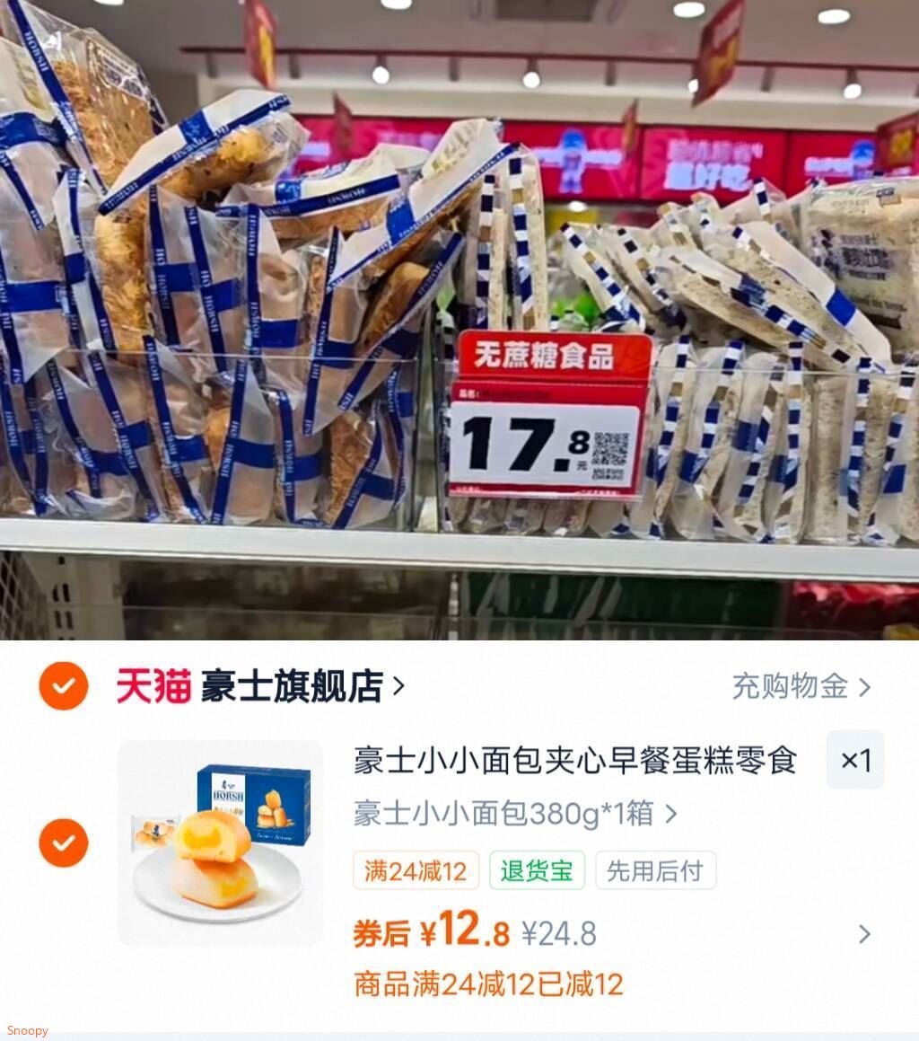 豪士小小面包380g/箱 12.8元发报员Z2026年04月17日 15:160举报 12.8元 拍第一选项【豪士】小小面包380g/箱芝士夹心嗷!!奶香味特浓这个牌子线下不管啥都超贵-https://m.tb.cn/h.iq3s9ah复制文案
