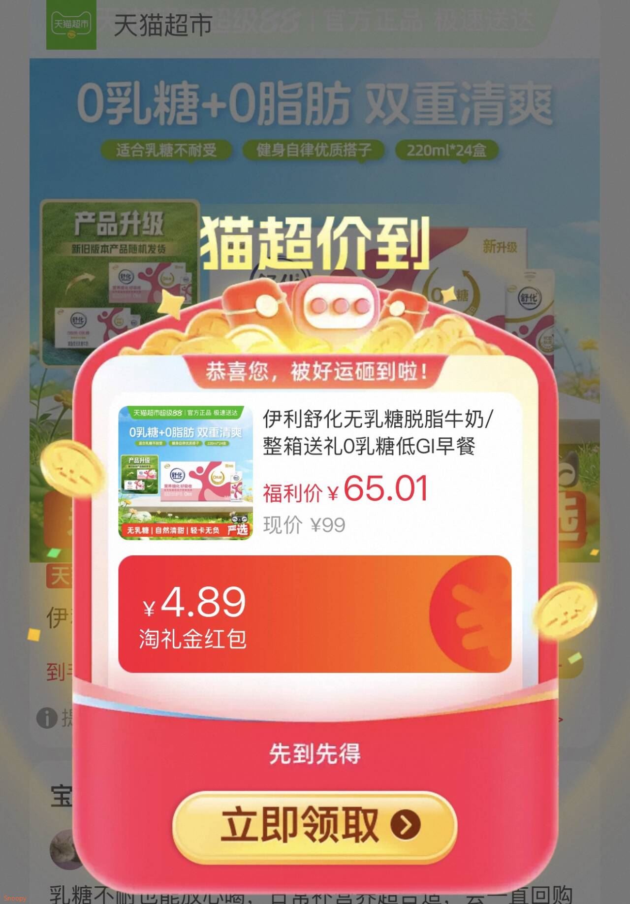 伊利舒化无乳糖脱脂牛奶/整箱送礼0乳糖低GI早餐24盒,到手【37.8】(图片不含礼金)