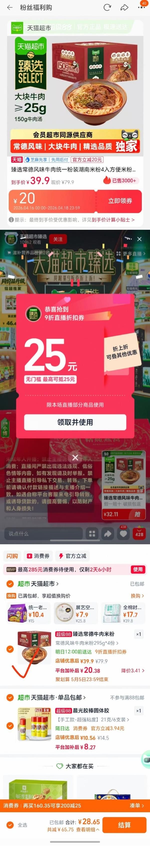 统一 那街那巷常德风味牛肉粉295g*4份家庭装【20.38】