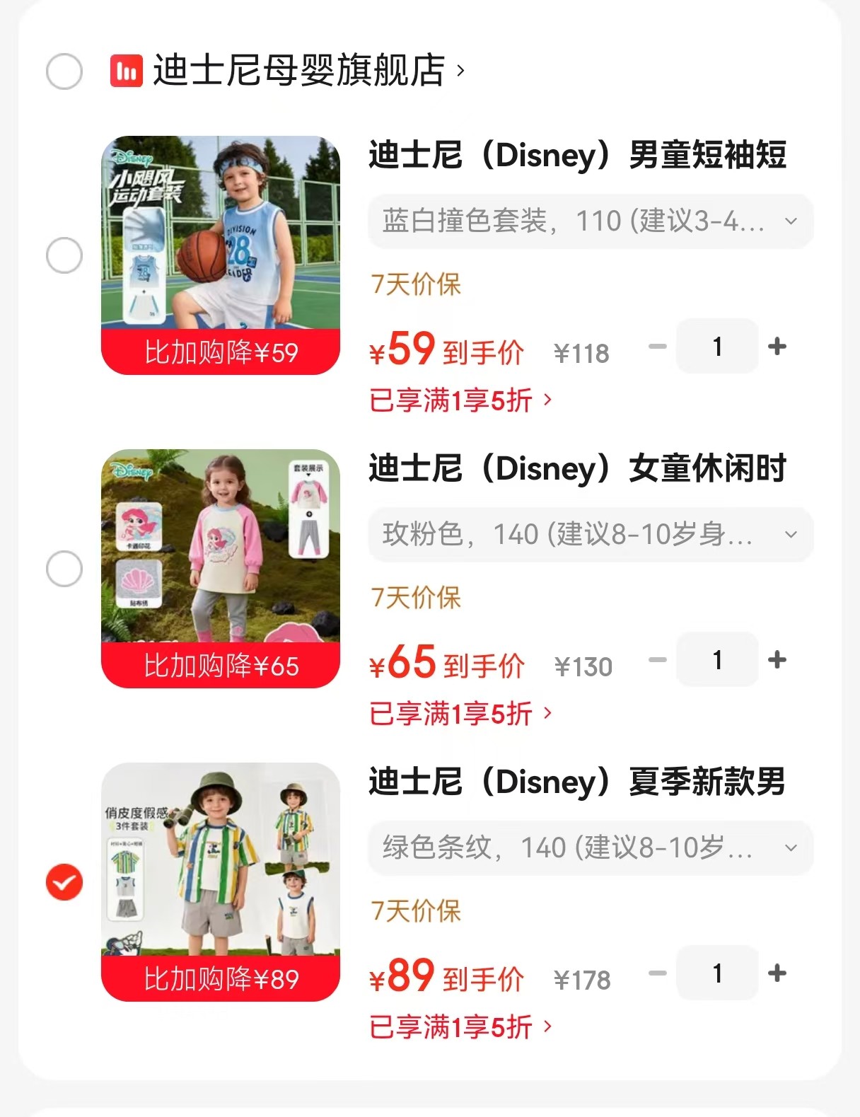迪士尼(Disney)男童短袖衬衫 背心 透气短裤 3件套【89】
