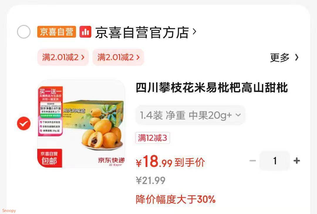 米易枇杷买1斤送1斤 到手2.8斤 単果20g起 到手约60-70颗 18.9元发报员Z2026年04月17日 21:110举报 速度 京喜买1送1 好价米易枇杷 买1斤送1斤 到手2.8斤 単果20g起到手约60-70颗 18.9元https://u.jd.com/jgcjS3K 复制文案