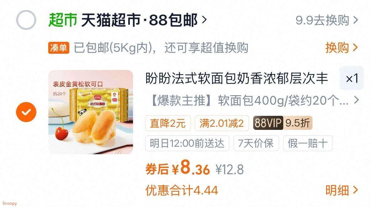 盼盼软面包400g约20个 8.3元发报员Z2026年04月17日 21:320举报 0.4/个 88vip 8.3元盼盼 软面包400g约20个https://m.tb.cn/h.iJmvOwO复制文案