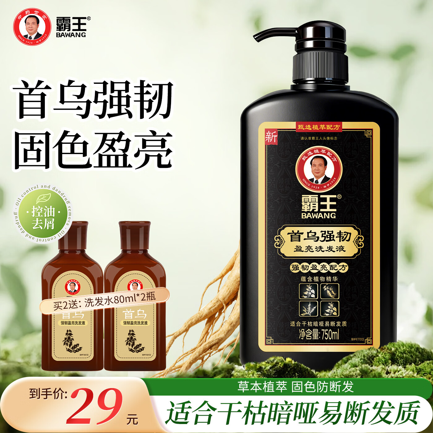 plus叠首购16.46元 霸王 首乌强韧洗发水750ml