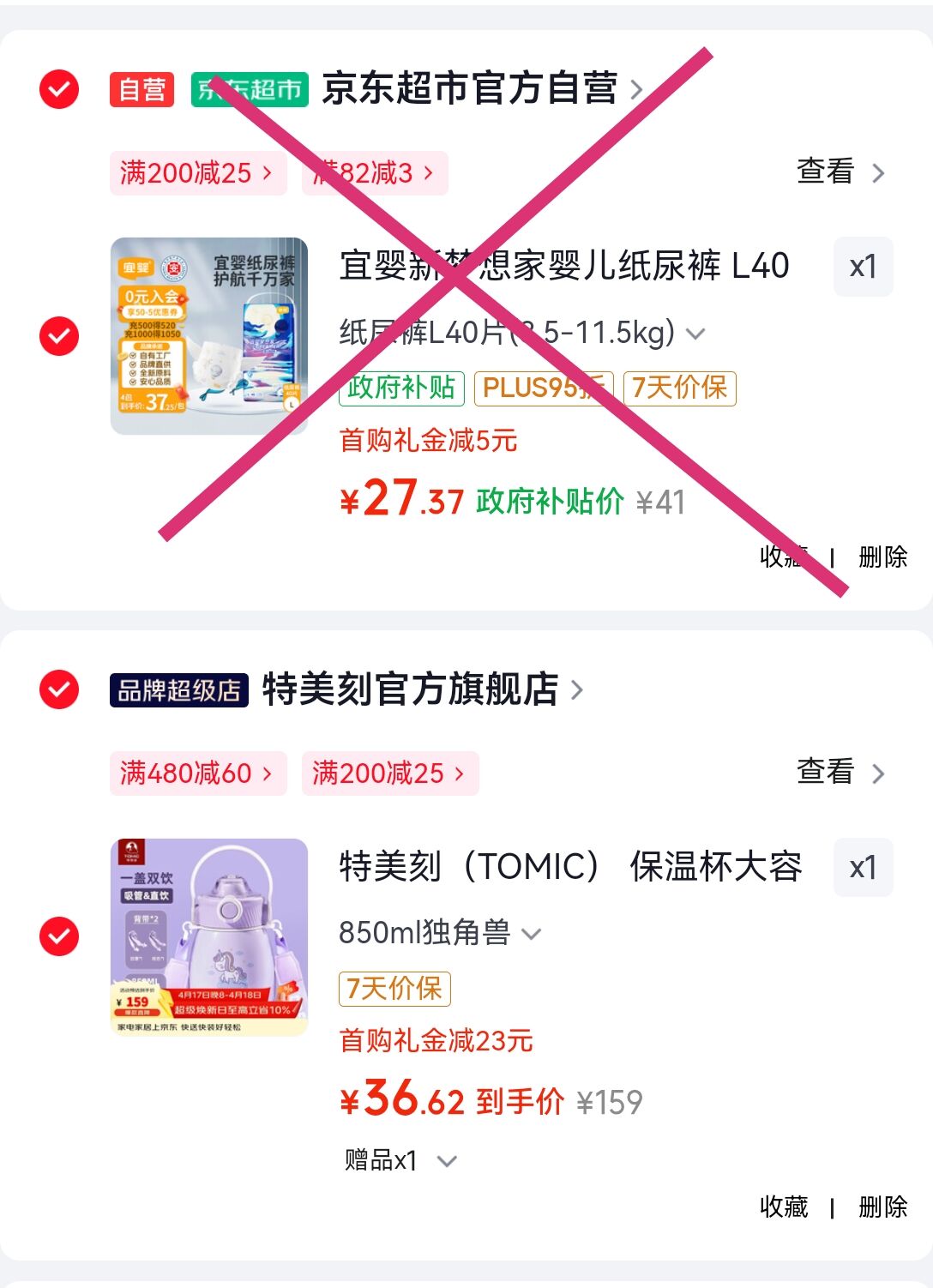 凑单任选1件付后退