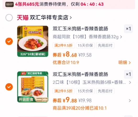 双汇玉米/香辣热狗肠共32gx20根 任选2件 19.5元发报员Z2026年04月19日 23:330举报 0点0.9元/根 任选②件19.5元【双汇】玉米/香辣热狗肠共32gx20根有香辣和玉米两种可选https://m.tb.cn/h.ircAi7p复制文案