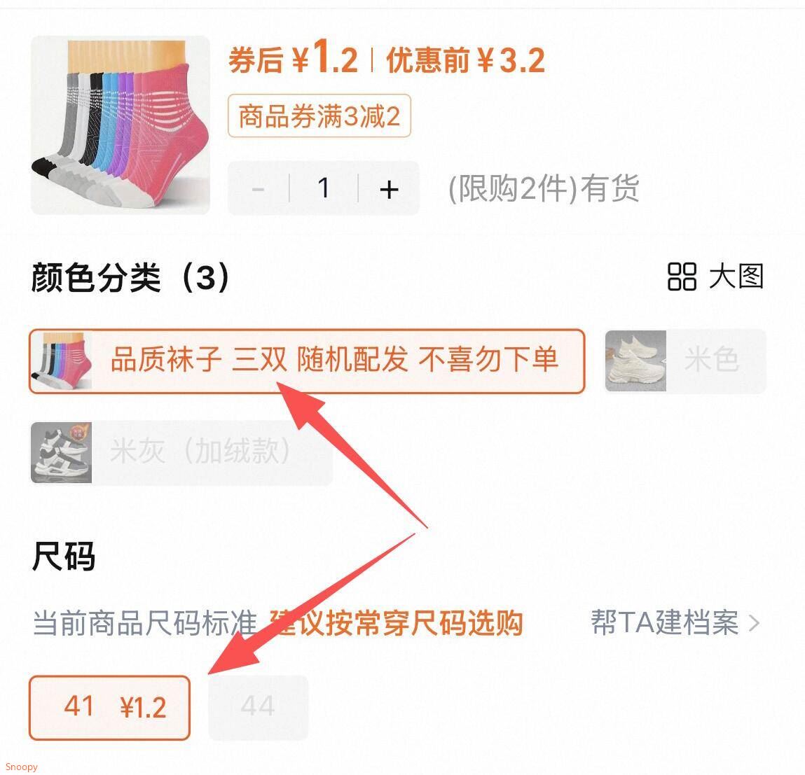 手动选41,袜子3双 1.2元