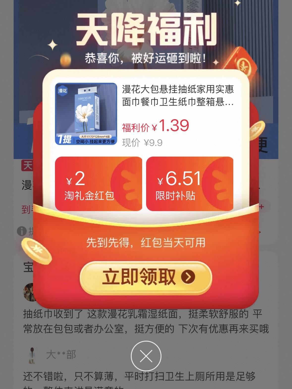 漫花纸巾/抽纸/湿厕纸等 1.3元