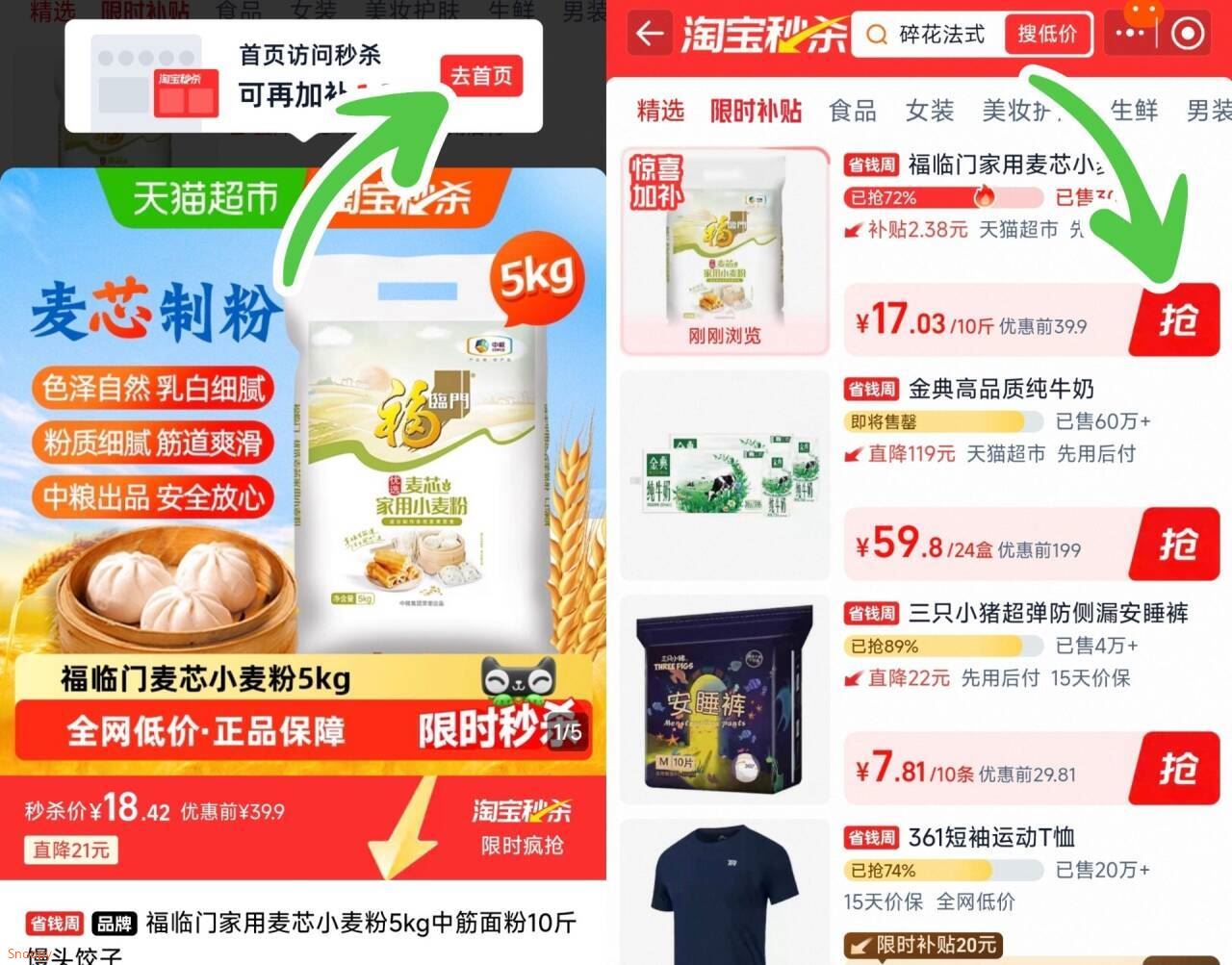 点顶部“去首页”去秒杀拍