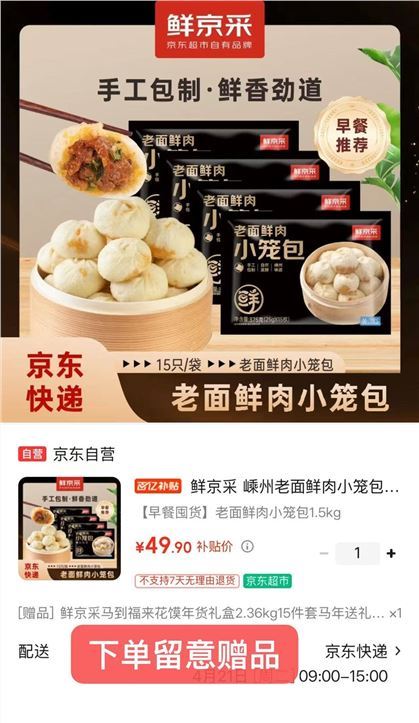 鲜京采嵊州鲜肉小笼包60只 49.9元