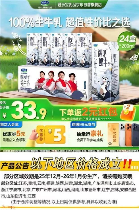 君乐宝遇见奶牛全脂纯牛奶200ml*24盒 29.9元发报员Z2026年04月20日 11:480举报 —— 纯奶区域豪車——【自营】君乐宝 遇见奶牛全脂纯牛奶200ml*24盒https://u.jd.com/jDkbQgs 仅.需29.9元 U,plus包U*才1.2元/盒 可拍2件 刚.需速复制文案