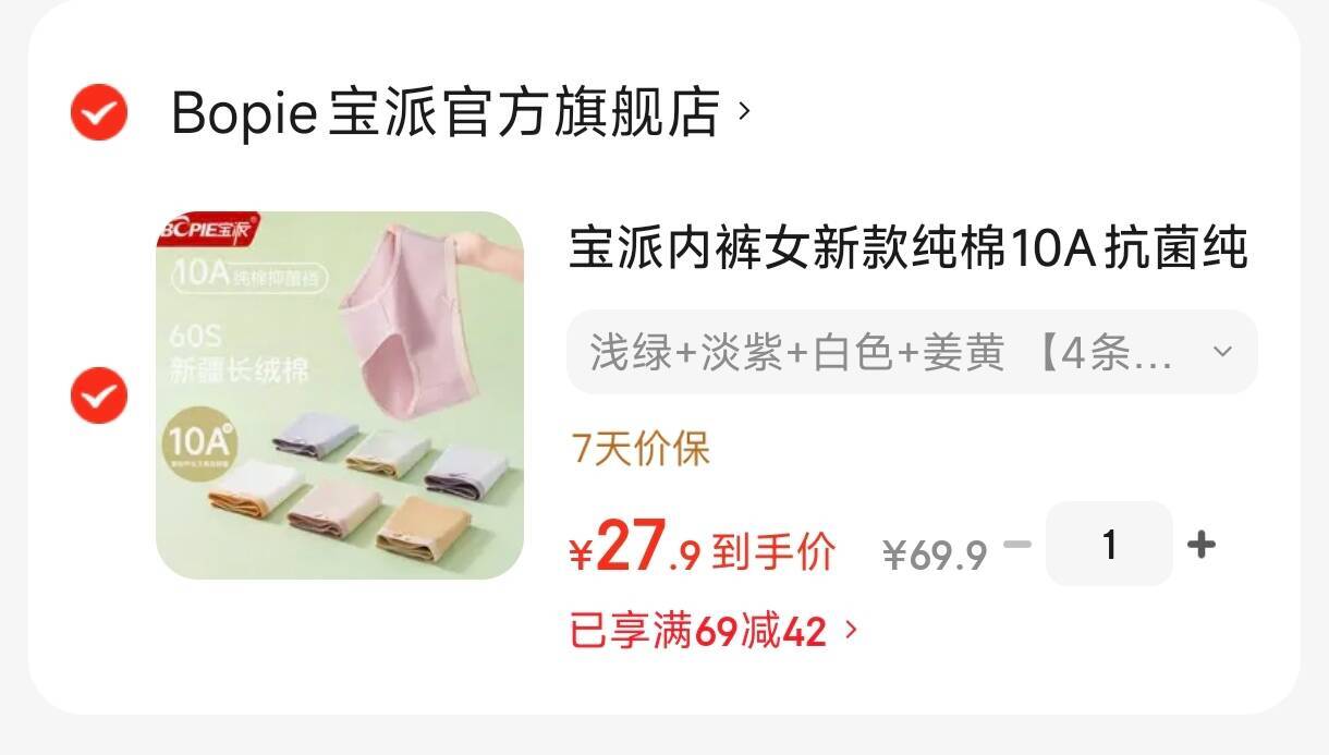 宝派10A抗菌纯棉女士内裤4条装 27.9元发报员Z2026年04月20日 15:280举报 宝派10A抗菌纯棉女士内裤4条装27.9元,折6.9一条https://u.jd.com/j6kRXCD复制文案