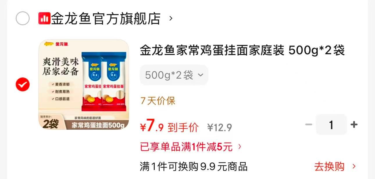 金龙鱼 鲜蛋和面挂面 120g*8袋 赠鲜蛋龙须高钙面100*2袋【10.9】