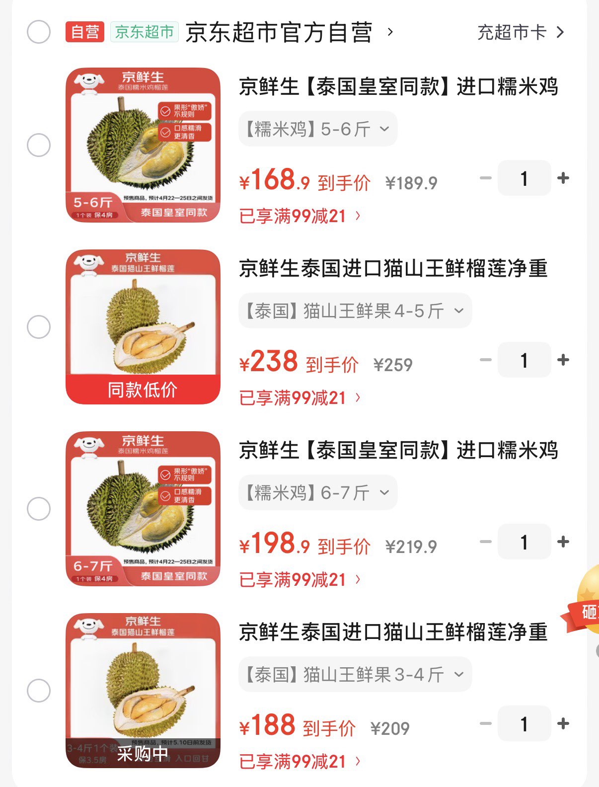 糯米鸡鲜榴莲 6-7斤 198.9元