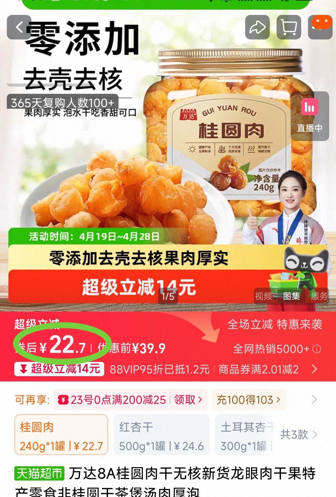 万达 8A无核桂圆干240g 22.7元 发报员Z 2026年04月21日 15:44 0 举报 88vip 22.7元猫超包U萬达 8A无核桂圆干240g这是去核去皮的 纯肉嗷!!泡茶炖汤干吃 都是绝绝子~-https://m.tb.cn/h.ireUBWu 复制文案