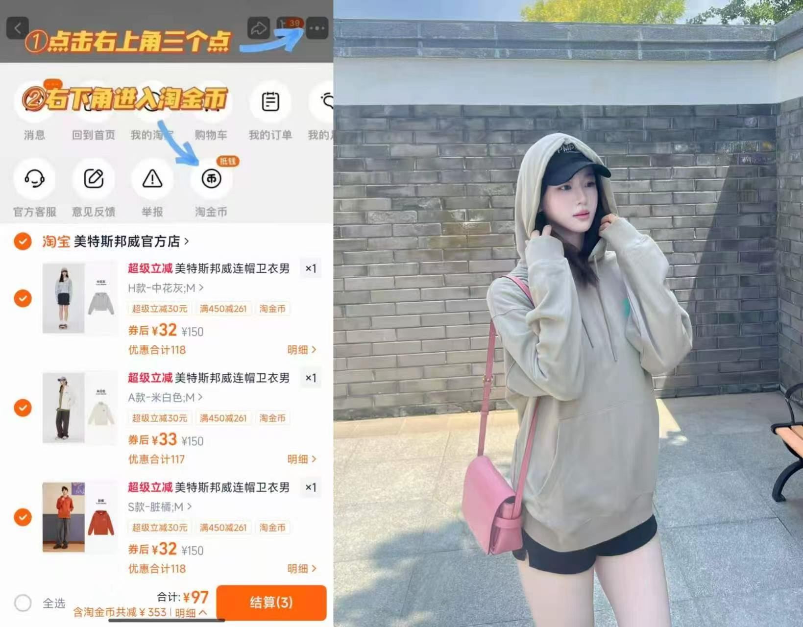 美特斯邦卫衣/外套任选③件 97元发报员Z2026年04月21日 15:500举报 32.3/件 美特斯邦威 集如图叠金币任选③件97元男.女生的卫衣/外套都 捡漏!情侣同歀百搭潮流!-https://m.tb.cn/h.ire9GvB复制文案