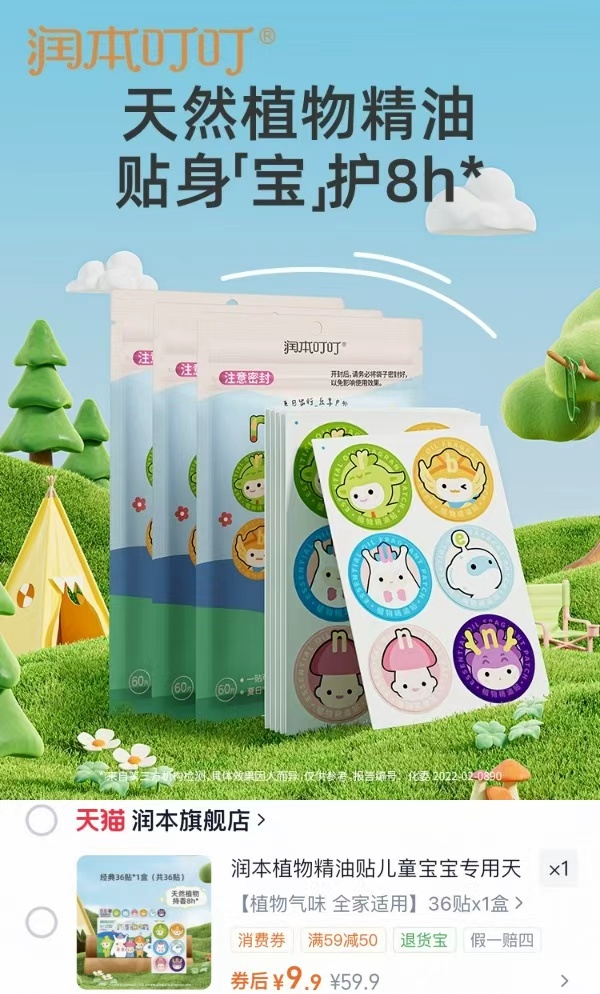 【润本旗舰店】植物精油贴驱蚊贴*36贴