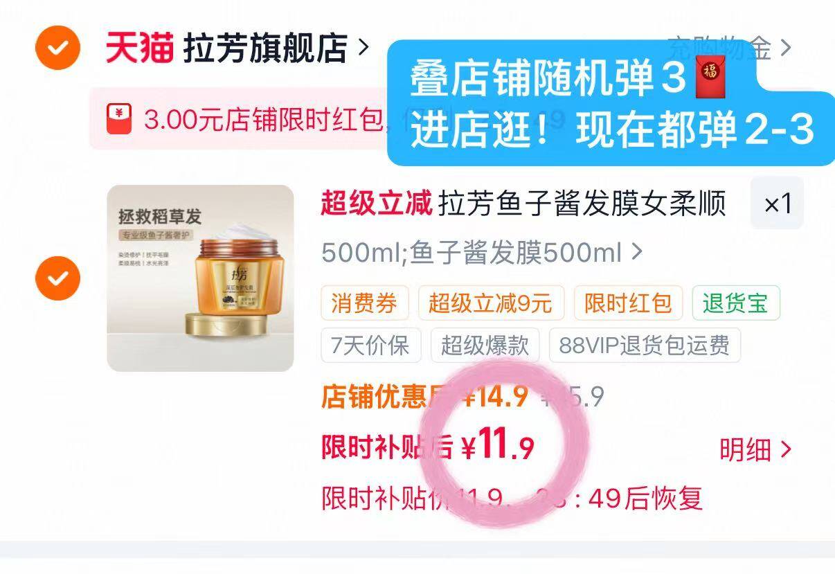 拉芳鱼子酱护发膜500ml 11元发报员Z2026年04月21日 20:080举报 11元拉芳鱼子酱护发膜500ml 第1个选项!我叠了3店铺 https://m.tb.cn/h.irArrTi-炒鸡好用!她家髙偳窾闭眼入!复制文案