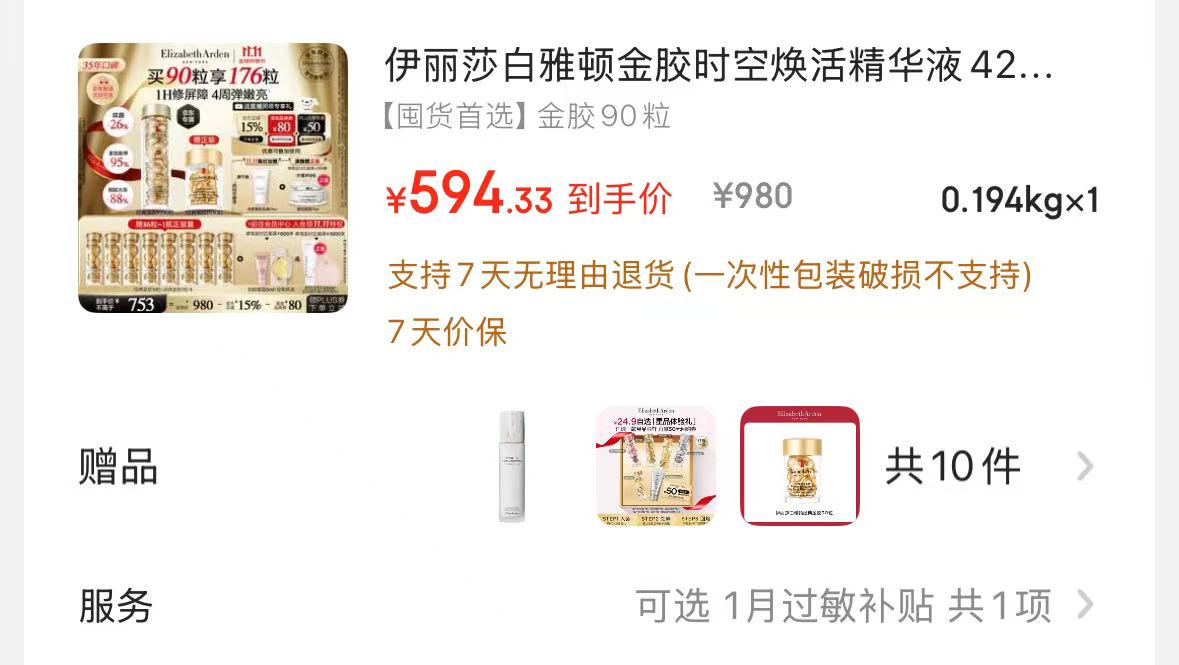 ③自营伊丽莎白雅顿 精华液42ml约90粒