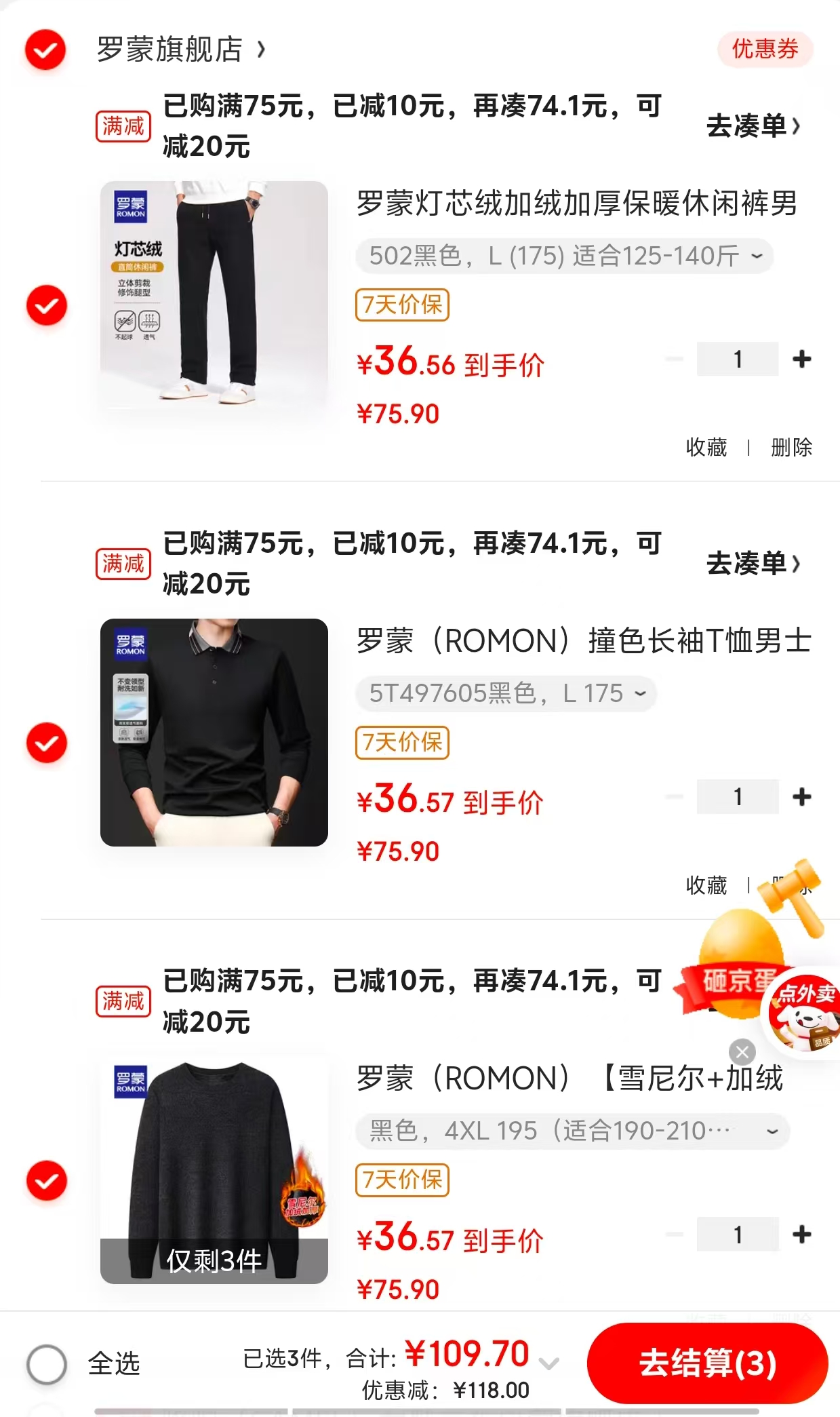罗蒙雪尼尔加绒针织衫+长袖T恤+灯芯绒加厚直筒休闲裤