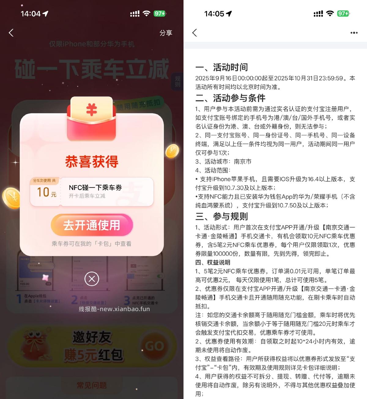 支付宝领10亓碰一下乘车立减 小刀 2025年09月30日 14:10 0 举报 暂时仅限苹果和华为用户领取!每天上下班坐公交地铁的很实惠支付宝APP扫码->直接领10亓碰一下乘车券,坐公交地铁都可以抵扣 复制文案 原文地址:https://www.x6d.com/i-wz-29998.html版权声明:本站作为免费线报整合平台,文章快照抓取源于网络。临时存储未经验证,本站不参与任何平台活动,请自行甄别,谨防受骗!