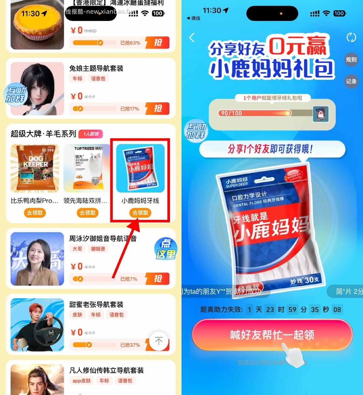 高德地图邀请1人领牙线包邮