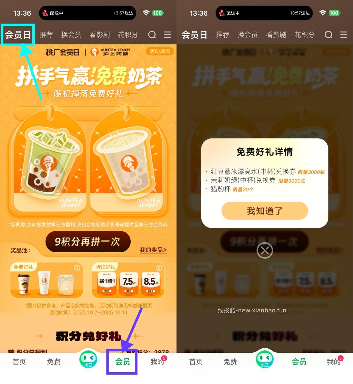 爱奇艺会员日抽沪上阿姨免单 小刀 2025年10月08日 13:40 0 举报 爱奇艺APP底部“会员”->顶部“会员日”->每9积分抽沪上阿姨免单券或买一送一券活动地址:https://tb3.cn/AqAQMz 复制文案 原文地址:https://www.x6d.com/i-wz-30026.html版权声明:本站作为免费线报整合平台,文章快照抓取源于网络。临时存储未经验证,本站不参与任何平台活动,请自行甄别,谨防受骗!